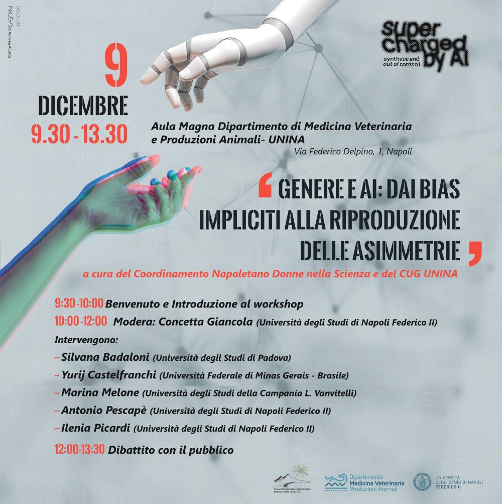 In occasione della mostra martedì 9 dicembre dalle 9.30 alle 13.30 si terrà il workshop 'Genere e IA: dai Bias Impliciti alla Riproduzione delle Asimmetrie' organizzato dal Coordinamento Napoletano Donne della Scienza e dal Comitato Unico di Garanzia dell'Ateneo federiciano.